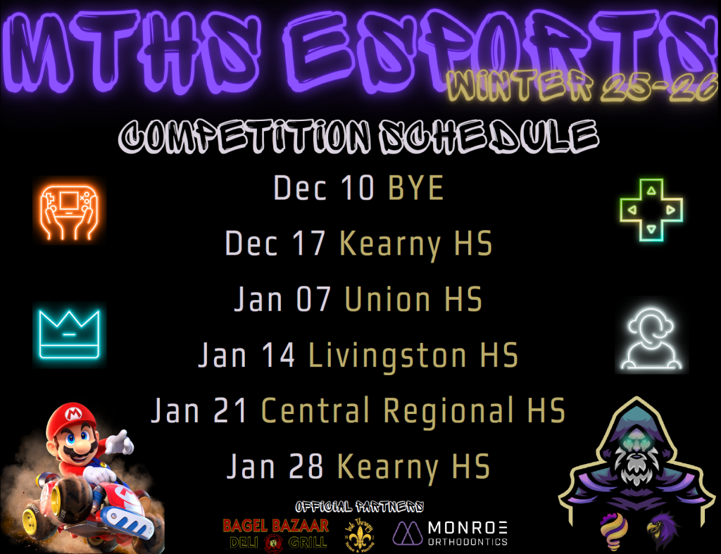 This Winter, participating students will be competing in the Garden State eSports (GSE) Winter Contender Season with Mario Kart 8, and students will have opportunities to compete against other local New Jersey school districts. All sessions will be held after school at the MTHS from 3:00 PM – 5:00 PM, and students will need transportation to and from school.
